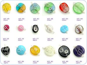 We have a huge collection different types of beads . Attached pictures are wire wrapped glass beads and many more designs are available with us at very attractive price.